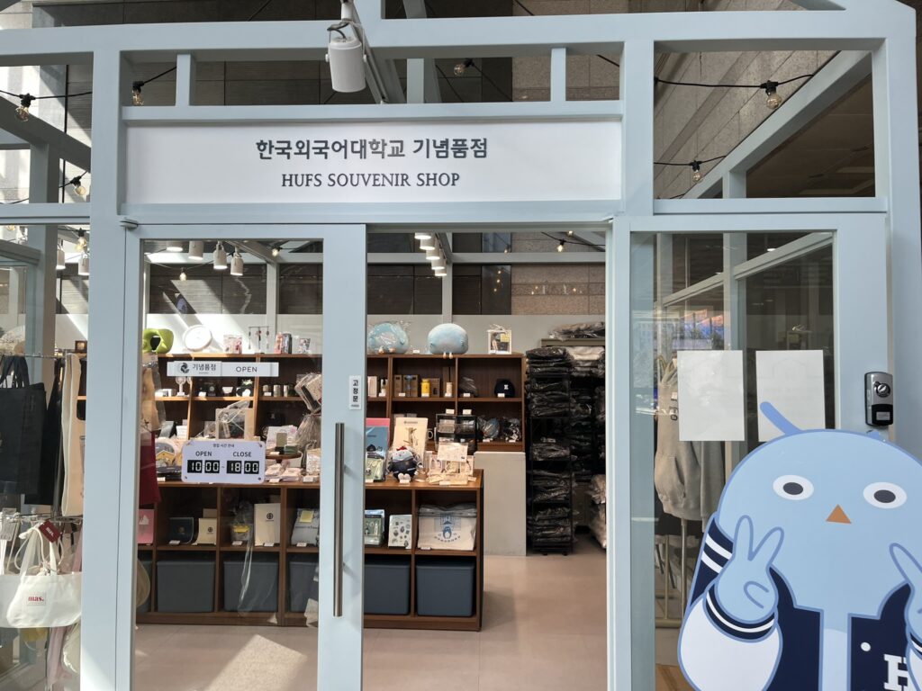 - 大学のマスコット「BOO(ブー)」: 記念品ショップの前に立っている大学のマスコット、BOO。 魂の抜けたような目のせいで少し変な見た目をしていますが、見ているうちに愛着が湧いてくるタイプです。フクロウ(부엉이/プオンイ)から取った名前のようです。