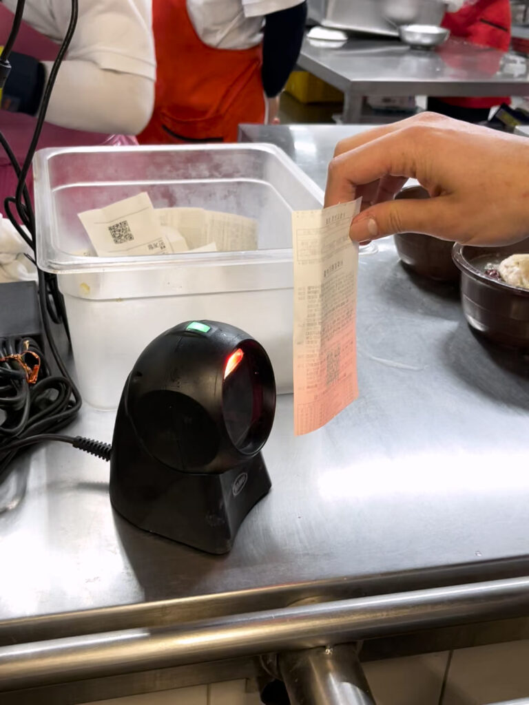 - QRコードが印字された食券を受け取って、QRをかざして料理を受け取ればOKです!