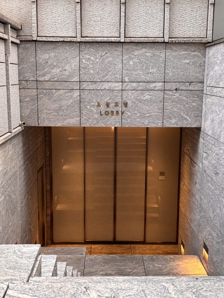 普通、ロビーは1階や地上階にあるものですが、ここはロビーが地下にあります。