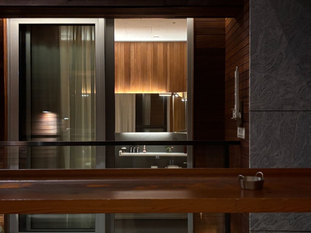 大きくて広い浴槽に半身浴用のカバーも完備されていて、横には窓があります。窓の向かい側は自分たちの寝室なので、安心して窓を開けて半身浴ができます。本当にプライベートな露天風呂に来たみたいでした。