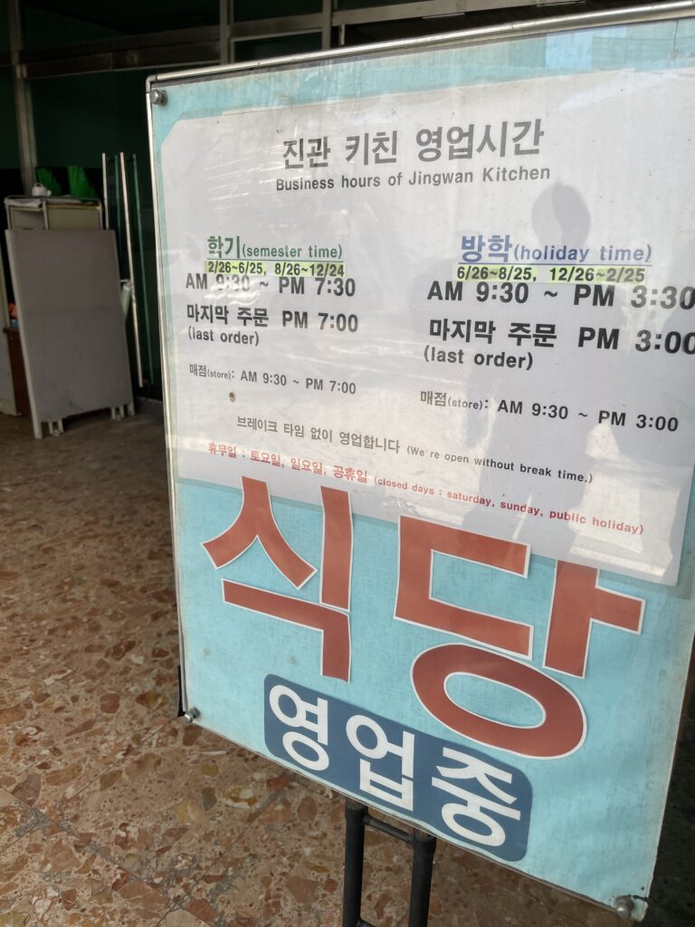 世宗大学の学食は有名なので期待していましたが、少しお値段高めでした。私が訪問した食堂以外に「コスパ最強」の食堂があるのかもしれません。