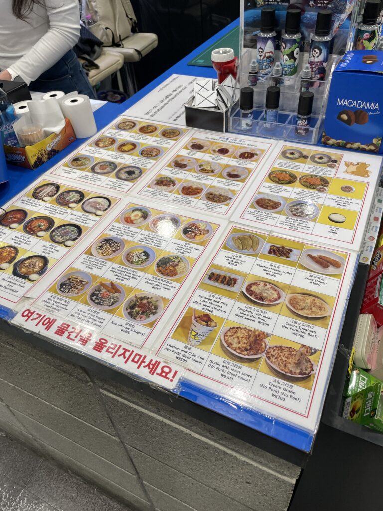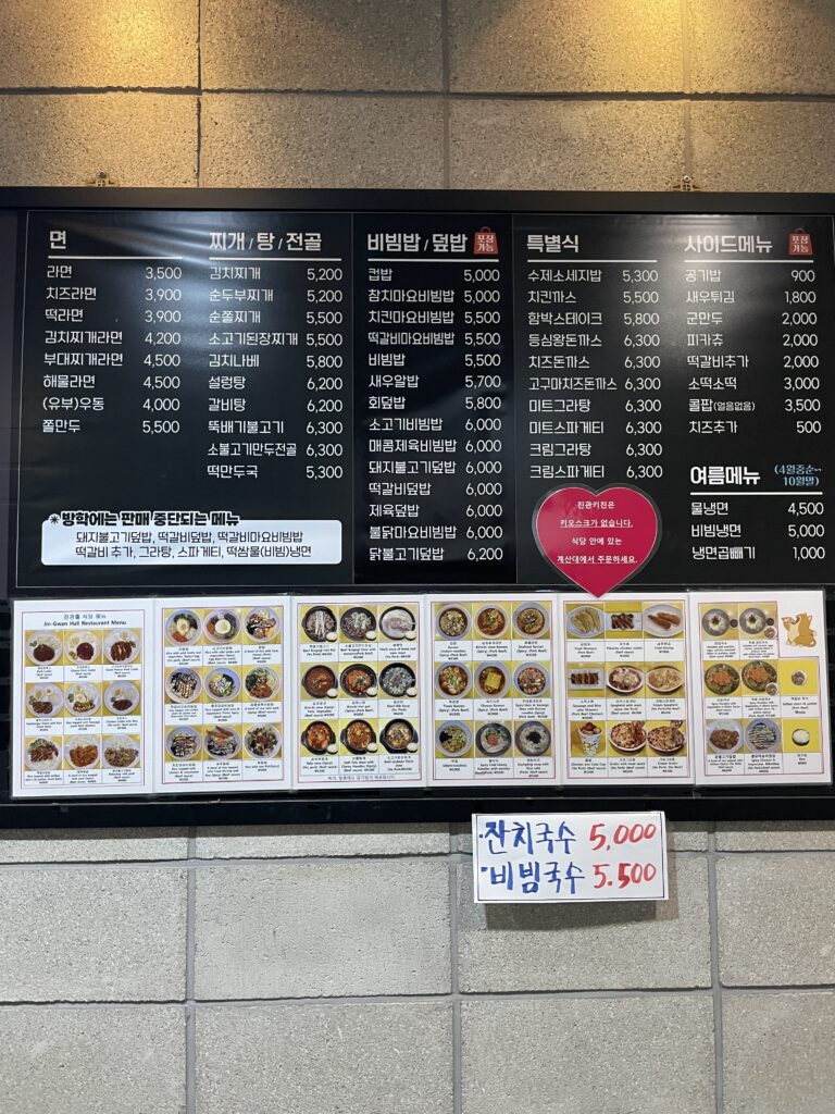 - ラーメンが3,500ウォンから始まり、ほとんどのメニューが6,000ウォン程度です。