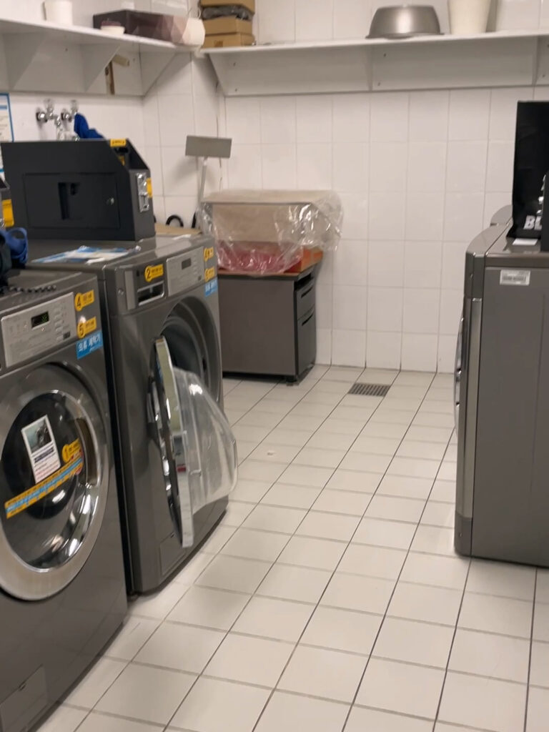 寮は清潔です。洗い場や電子レンジなど、簡単な料理をして食べられる施設があります。同じ階にコインランドリーもあり、便利に利用することができます。