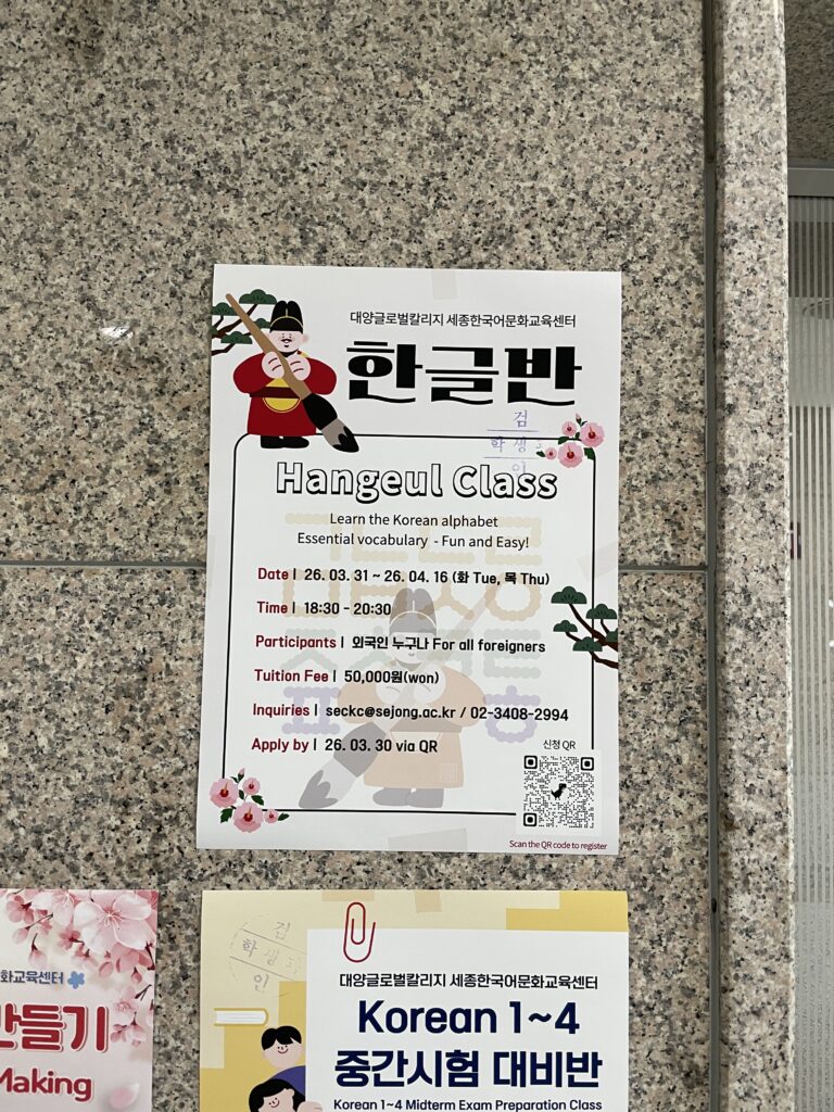 – 連携奨学金: 世宗大言語教育院(語学堂)の修了生が本校の学部に進学する場合、入学金免除などの特典があり、日本人留学生の学費負担を大幅に減らしてくれます。